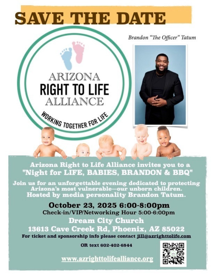 Join us for an unforgettable evening dedicated to protecting Arizona’s most vulnerable—our unborn children. Hosted by media personality Brandon Tatum.